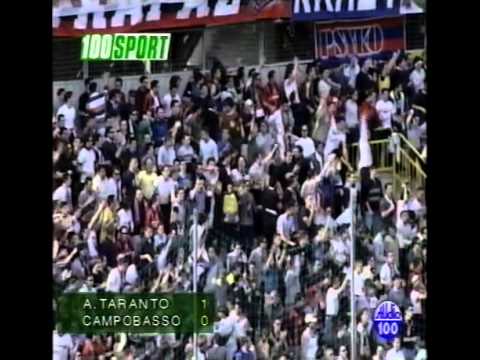 A dieci dalla fine il match si sblocca: punizione in favore dei padroni di casa, poco dietro la lunetta dell’area di rigore. Sul punto di battuta si presenta lo specialista Campioli che questa volta non sbaglia. Destro “a foglia morta” sul palo del portiere che resta pietrificato e non può far altro che scrutare il pallone insaccarsi nell’angolino basso. Pubblico tarantino in tripudio e squadra al completo che va a festeggiare sotto la Curva Nord. Il Campobasso non ci sta ed il match si incattivisce, come ogni scontro diretto che si rispetti. Il match winner Campioli e Magno eccedono nell’agonismo e lasciano i propri compagni in nove.