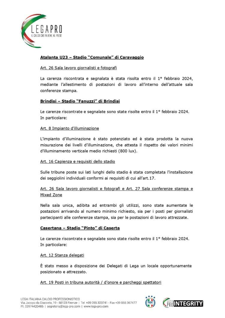 Non si comprende come mai questa soluzione non venga accolta, nonostante siano ufficiali le autorizzazioni e il superamento delle deroghe che consentono al campo comunale di Brindisi di essere funzionale ad accogliere le dispute della serie C.