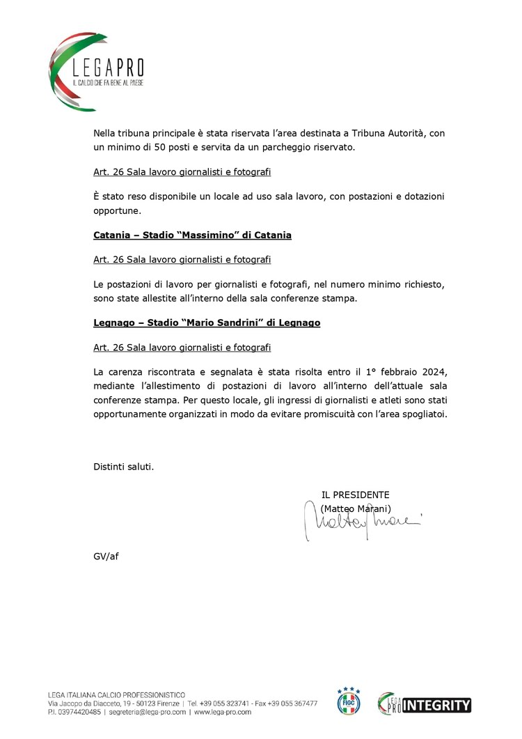 L’ amministrazione augura solo il meglio per la squadra e per l’intero club.
