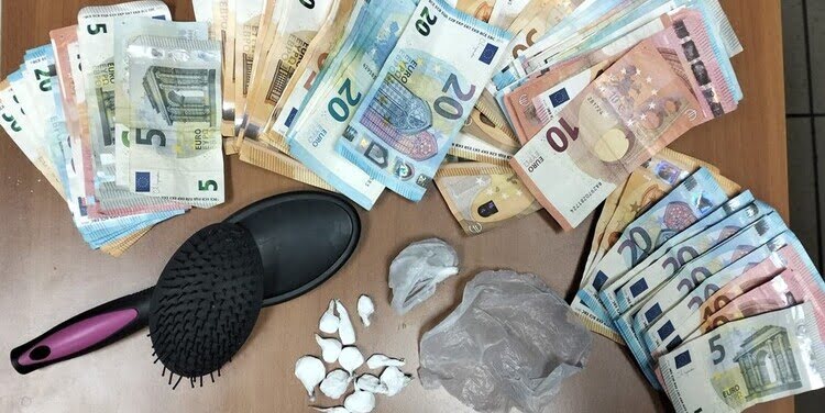 Durante la perquisizione, i Falchi hanno rinvenuto 12 dosi di cocaina nascoste all’interno di una comune spazzola in plastica, oltre a 3.500 euro in contanti trovati nella camera da letto, ritenuti verosimilmente provento dell’attività di spaccio.