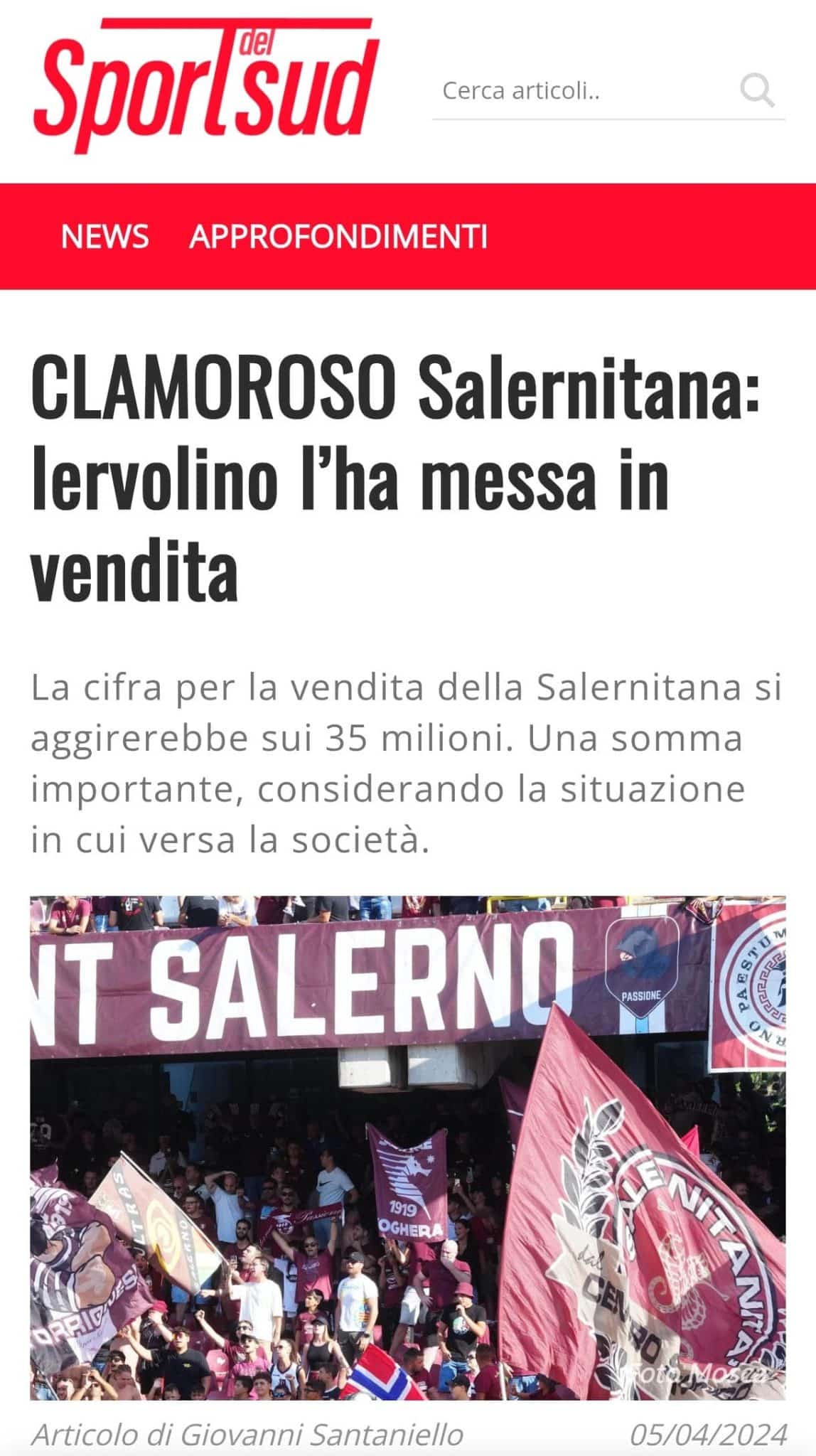 Salerno, tra le più passionali del panorama calcistico europeo”.