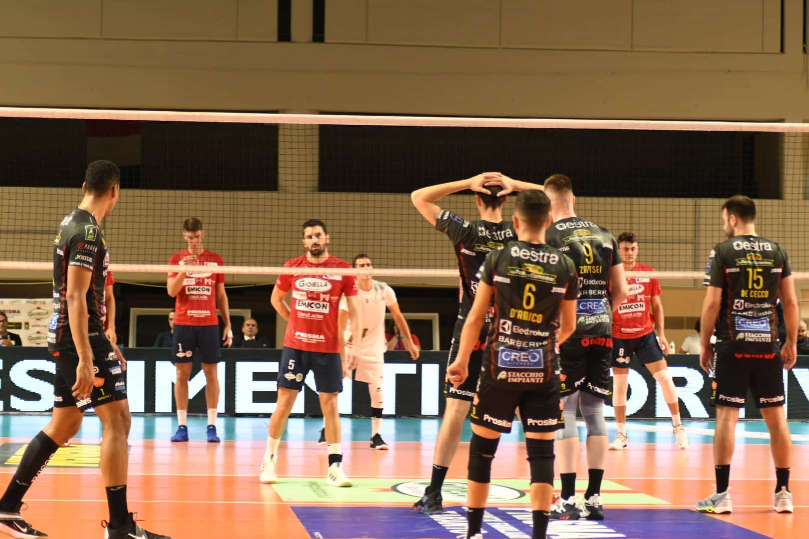 “Non sono al 100% della forma assolutamente. Ci sono dei giocatori che devono imparare a giocare con cattiveria per giocarsi i punti. Abbiamo perso dei mezzi punti, delle palle medie e non siamo stati bravi, perchè lì dovevamo mantenere il ritmo. In più chiaramente manca la forma a Stefani e a Falaschi e allora queste situazioni contro queste squadre si pagano maledettamente.”