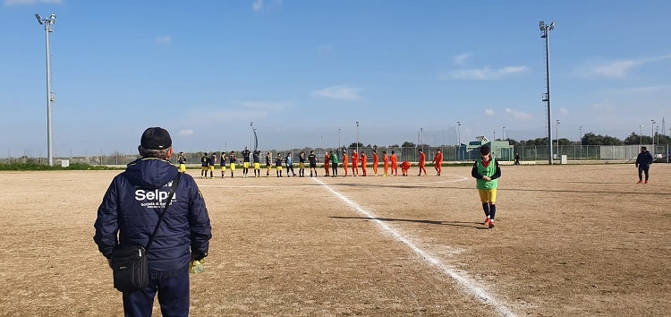 Partenza sprint dei gialloblù al 5’ con D’Onofrio G. che involandosi sulla destra, entra in area e conclude con un destro che viene respinto prontamente dall’estremo difensore avversario. Dopo una decina di minuti ci provano i locali con un tiro centrale parato facilmente da Fanelli. Palagiano che prova a costruire e dopo un paio di minuti Camara non sfrutta una palla dal limite dell’area dove stecca il tiro; alla mezz’ora ancora la risposta dei padroni di casa con una punizione dal lato sinistro intorno i 25 metri che vede Fanelli protagonista con una bella respinta. Ultimi minuti del primo tempo che vede il Palagiano provarci altre due volte: prima con Gasparre che trova il portiere lesto ad intervenire su una conclusione potente e successivamente con D’Onofrio G. che dal limite dell’area ci prova con un rasoterra che sfiora il palo alla destra del portiere immobile.