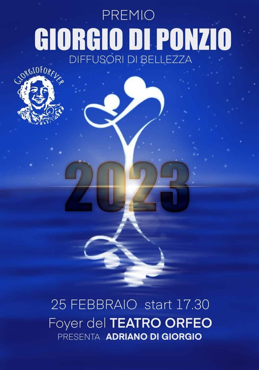 Si comunica che in data 25 Gennaio alle ore 10,30 presso i Giardini Virgilio a Taranto, si terrà la conferenza stampa di presentazione del Premio Giorgio Di Ponzio – Diffusori di Bellezza. L’evento, presentato da Adriano Di Giorgio, si terrà il prossimo 25 Febbraio presso il foyer del Teatro Orfeo di Taranto, con inizio alle ore 17,30.