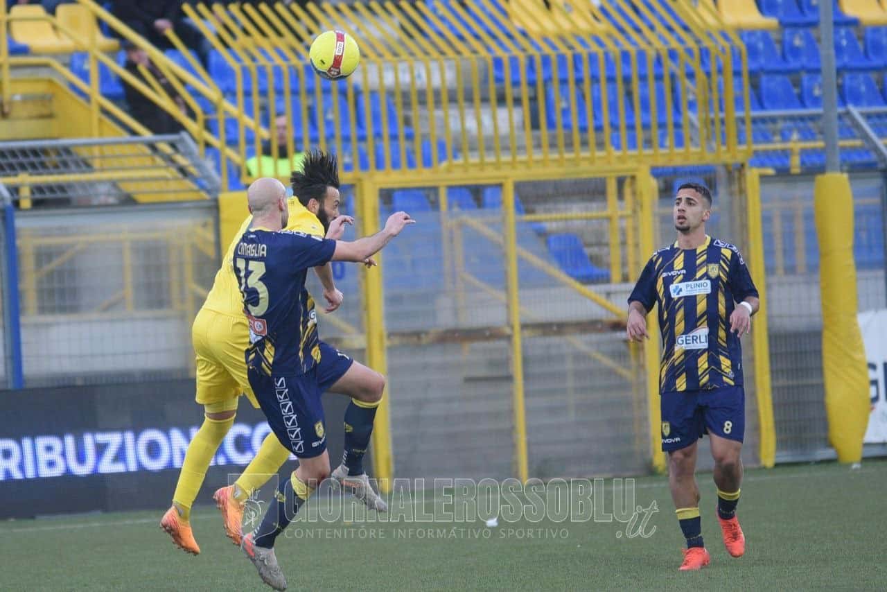 VITERBESE – CATANZARO: la prima sconfitta stagionale del Catanzaro arriva a Viterbo. Ai gialloblù di mister Lopez basta un gol di Riggio nel primo tempo e tanta solidità difensiva per mettere a referto una vittoria dal valore inestimabile. Il Catanzaro provava a fare la partita sin dall’inizio. Al 10′ il primo squillo ospite: Bisogno era attento e respingeva in angolo sul tentativo di Vandeputte. Dal tiro dalla bandierina scaturiva un’altra opportunità per i calabresi con Brighenti che, tutto solo in area di rigore, spediva fuori di testa. Ma alla prima proiezione offensiva la Viterbese andava in vantaggio: calcio d’angolo dalla destra e Riggio, dopo una mischia, gonfiava la rete per il goal gialloblù. Veemente la reazione della capolista che produceva il massimo sforzo con due occasioni a cavallo del 20′: prima, super Bisogno diceva di no a Sounas, poi era la traversa ad impedire il pareggio di Ghion. Nel secondo tempo serviva subito un miracolo di Bisogno per scongiurare il pareggio del Catanzaro: al 10′ il portiere della Viterbese, sugli sviluppi di un calcio da fermo, negava il pareggio da pochi passi a Martinelli. L’undici di Vivarini attaccava a pieno organico ma faticava a creare occasioni. In contropiede, invece, la Viterbese spaventava Fulignati con la conclusione di Marotta che terminava alta sopra la traversa. Tanti calci d’angolo per il Catanzaro, alla fine erano dieci, ma Bisogno non correva particolari rischi. Al triplice fischio esultava la Viterbese per tre punti di platino in ottica salvezza.
