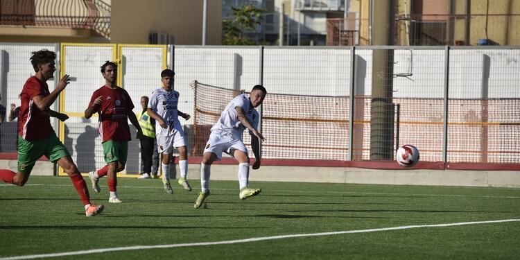 La gara si accende subito. Al 5’ il Taranto sfiora il vantaggio con un’iniziativa di Derosa, seguita dal tiro di Echegoyen che termina sull’esterno della rete. Due minuti dopo, però, la Polimnia passa in vantaggio: l’ex Serafino trova l’angolo giusto con un destro dal limite e porta gli ospiti sull’1-0.