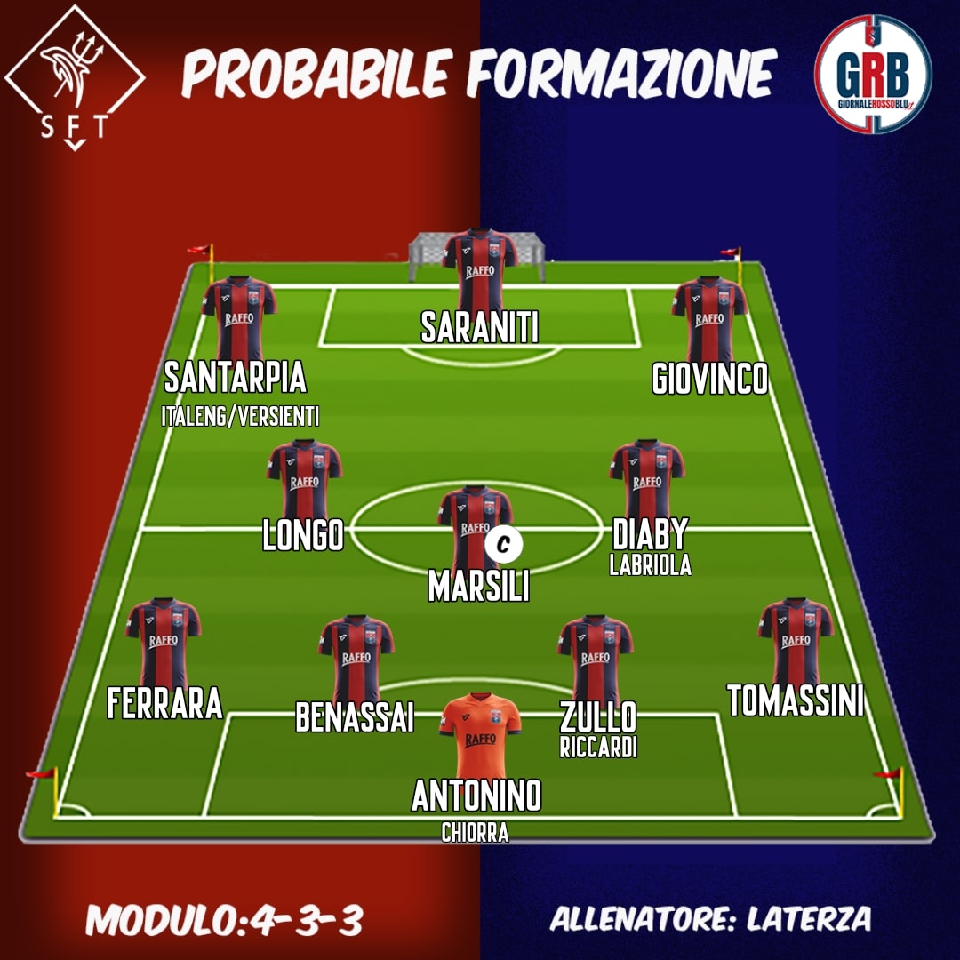 Davanti quasi sicuramente ci saranno Saraniti e Giovinco; per l’ultima maglia da titolare ballottaggio a 3 tra Santarpia, Versienti e Italeng. Con uno dei primi 2 vedremmo un classico 4-3-3, con Italeng invece attenzione ad un possibile 4-3-1-2 con Giovinco che potrebbe andare a ricoprire il ruolo di trequartista.
