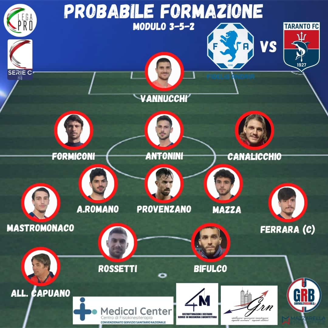 A centrocampo i titolari dovrebbero essere Provenzano, Antonio Romano e uno tra Mazza e Labriola, con il primo che parte al momento in vantaggio. Sulle fasce agitano nuovamente Ferrara e Mastromonaco.