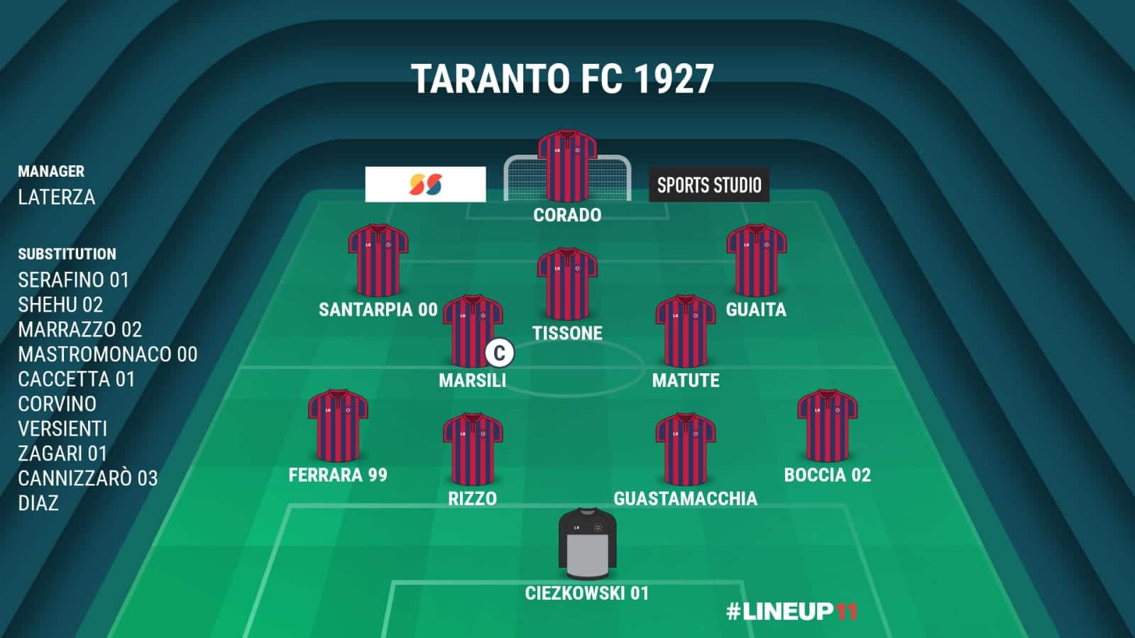 L’allenatore Laterza schiererà in campo i suoi nuovamente con un 4-2-3-1 e avrà pochi dubbi di formazione viste le tante assenze. Diaby sarà infatti squalificato, mentre non ci saranno Falcone e Gonzalez per infortunio.