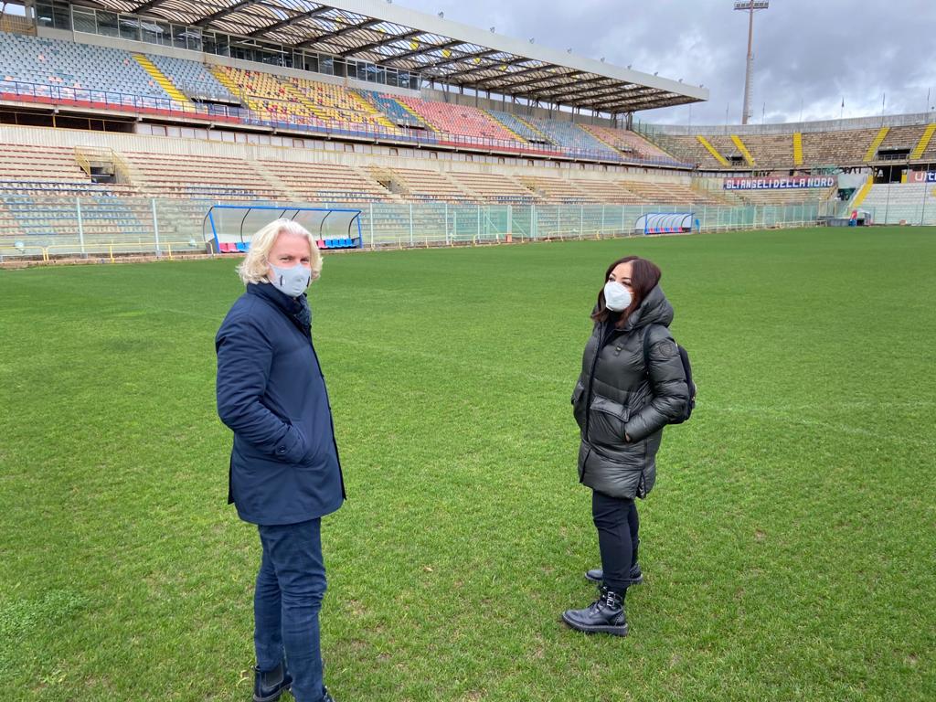 Sopralluogo degli assessori allo Sport Fabiano Marti e ai Lavori Pubblici Francesca Viggiano allo stadio Iacovone.